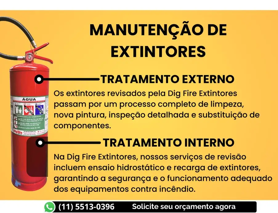 Confie na Dig Fire Extintores, empresa especializada em manutenção de extintores, seguindo rigorosamente as normas do INMETRO. Garantimos a eficiência e conformidade total dos seus equipamentos através da manutenção de extintores realizada por profissionais qualificados.
